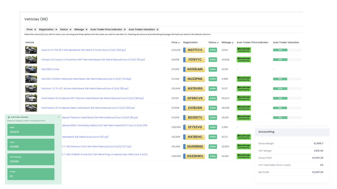 Calculate gross profit, margins and VAT scheme comparisons for any vehicle deal.